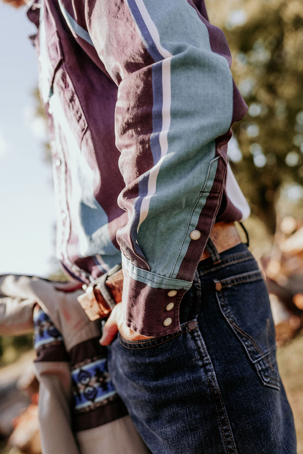 Wrangler Girl's L/S Striped Patchwork Denim Western Snap Shirt