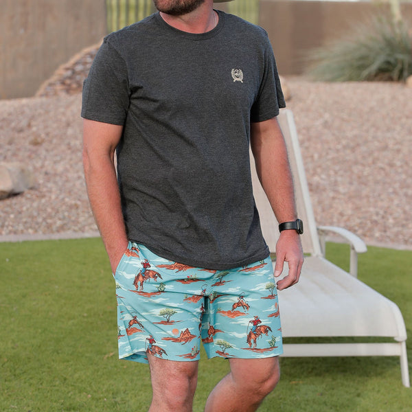 Cinch Men's Desert Bucking Horse Swim Trunks in Blue