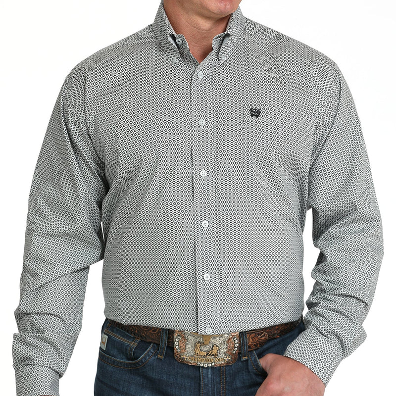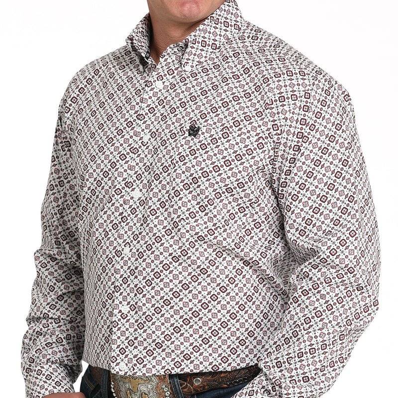 Cinch Men's L/S Classic Fit Geometric Medallion Western Button Down Shirt in Cream