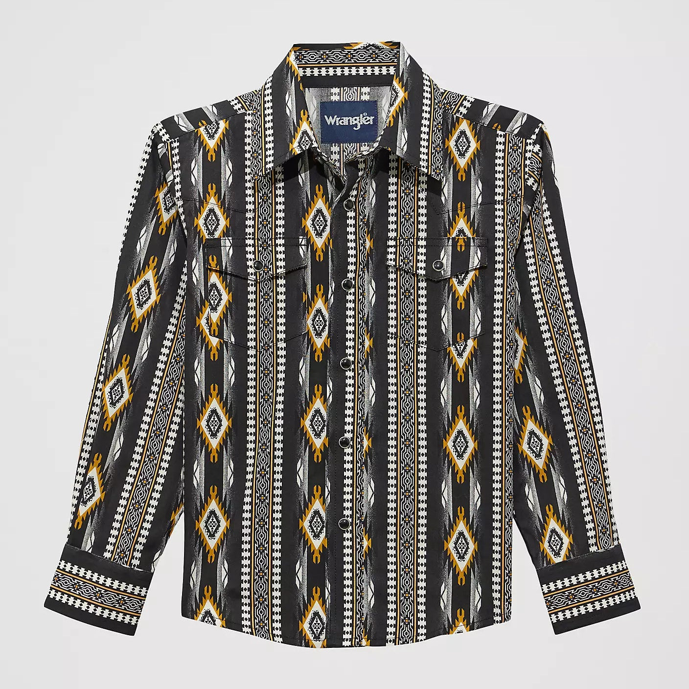 Wrangler Boy's Checotah L/S Western Snap Shirt in Crow Black