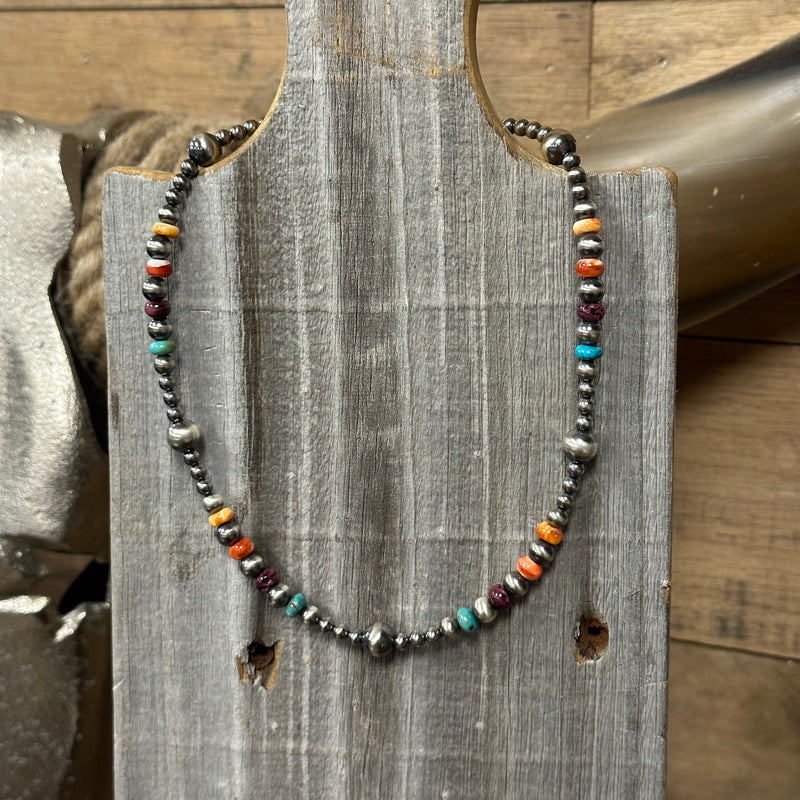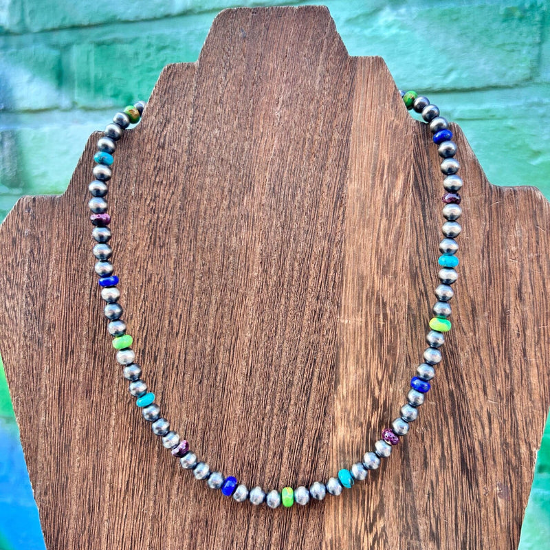 22" Handmade Navajo Inspired Gemstone Beaded Necklace