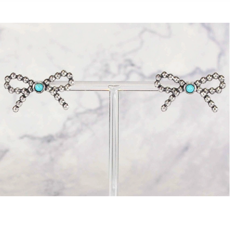 3D Bead Texture Silver Turquoise Ribbon Post Earrings