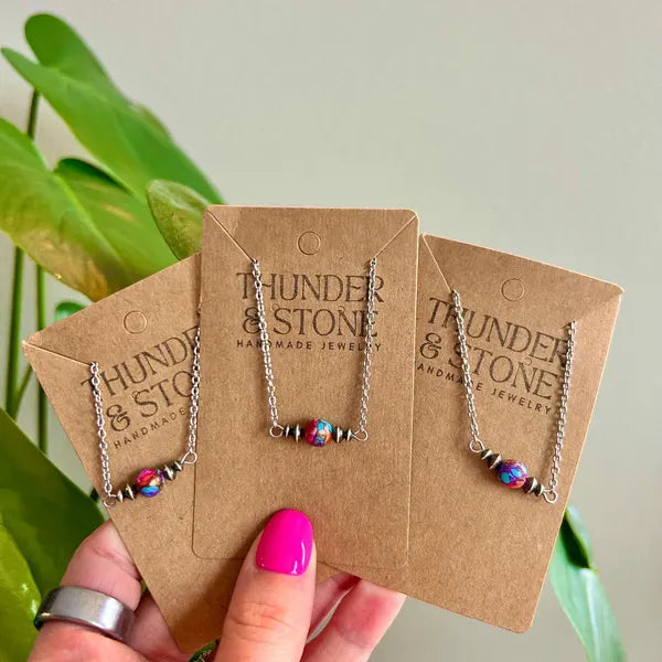 Thunder & Stone Genuine Pink Dahlia Turquoise & Silver Pearl Western Bar Necklace