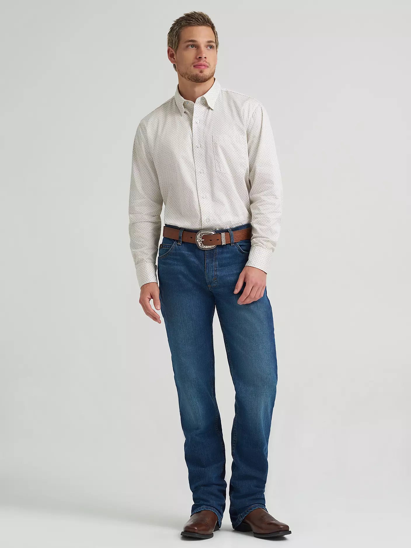 Wrangler Men's L/S Cody Johnson One Pocket Button Down Shirt in Yellow Charcoal
