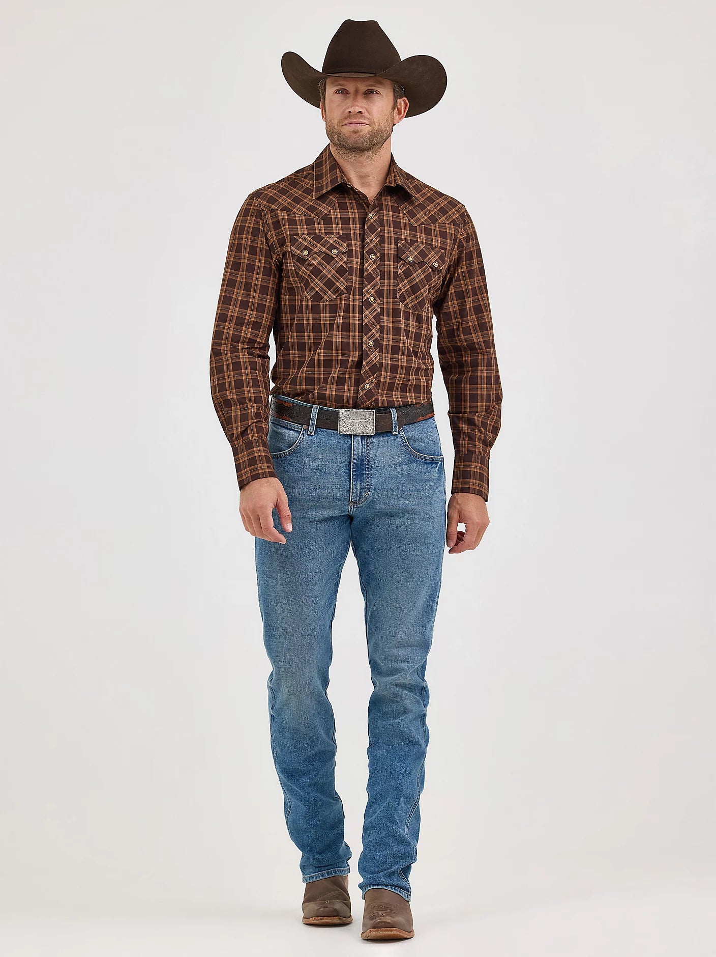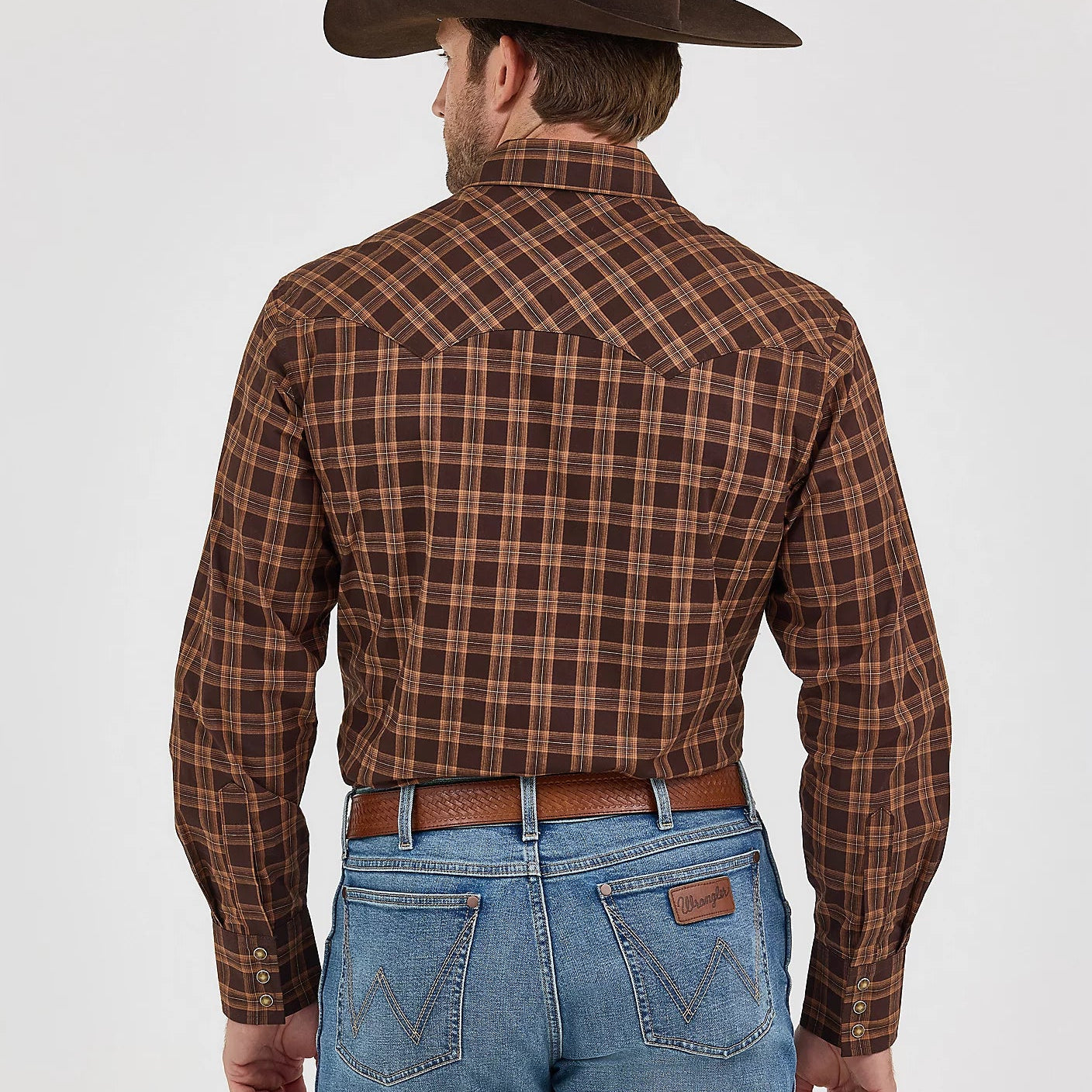 Wrangler Retro Men's L/S Sawtooth Pocket Plaid Western Snap Shirt in Mocha Brown