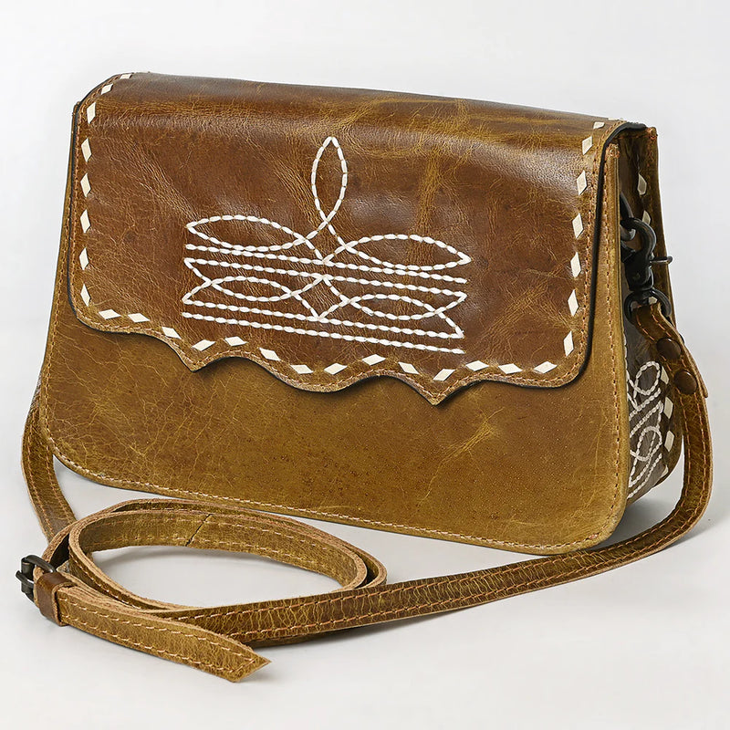 American Darling Western Boot Stitch Distressed Tan Leather Crossbody Bag