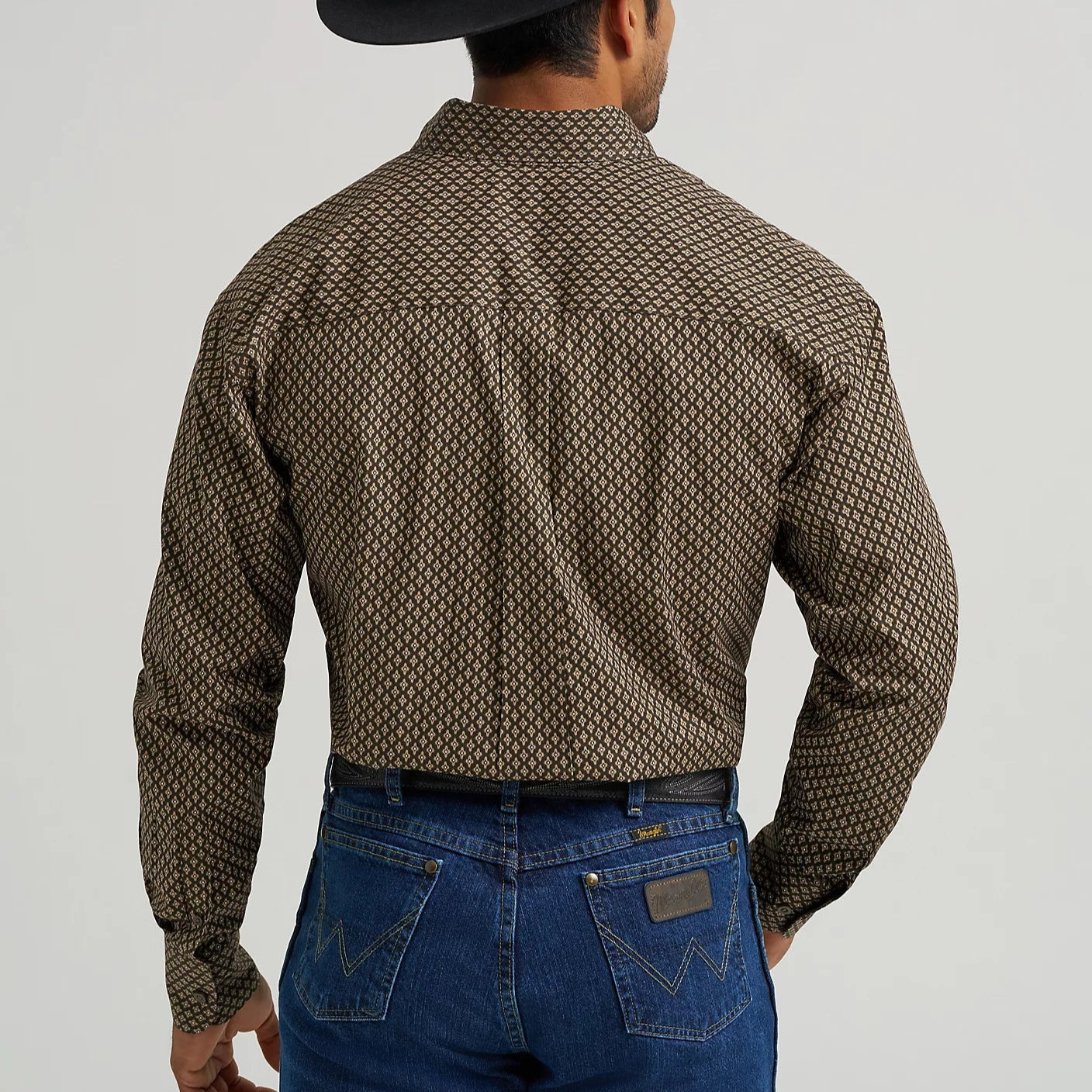 Wrangler Men's L/S George Strait Button Down Shirt in Coffee Rhombi (Available in Plus Sizes)