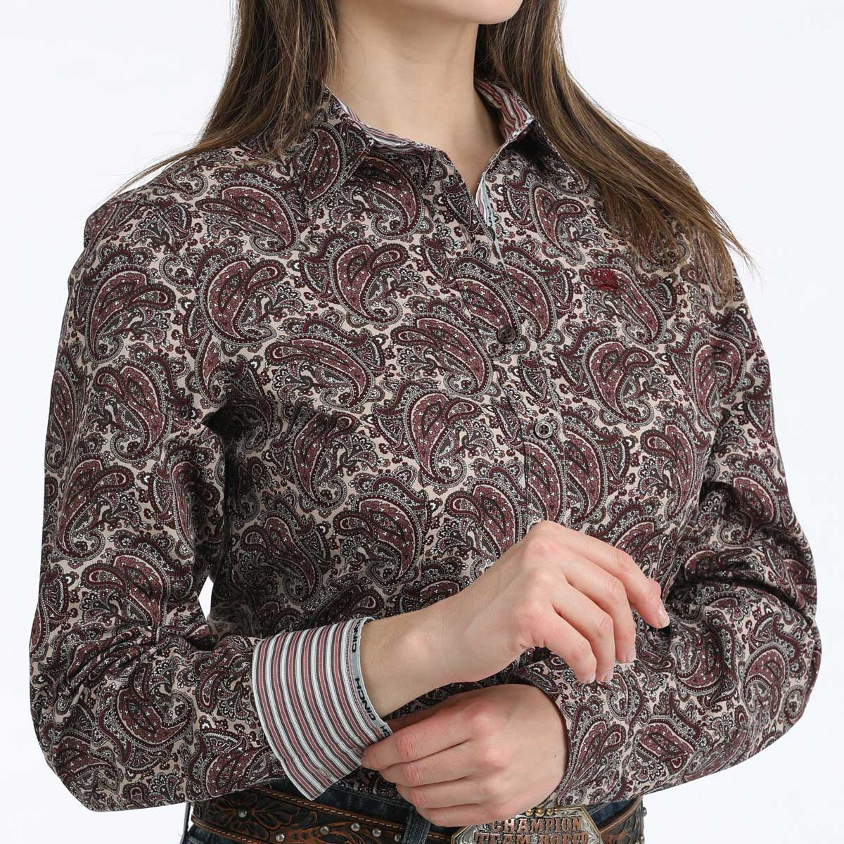 Cinch Women's L/S Paisley Western Button Down Shirt in Burgundy