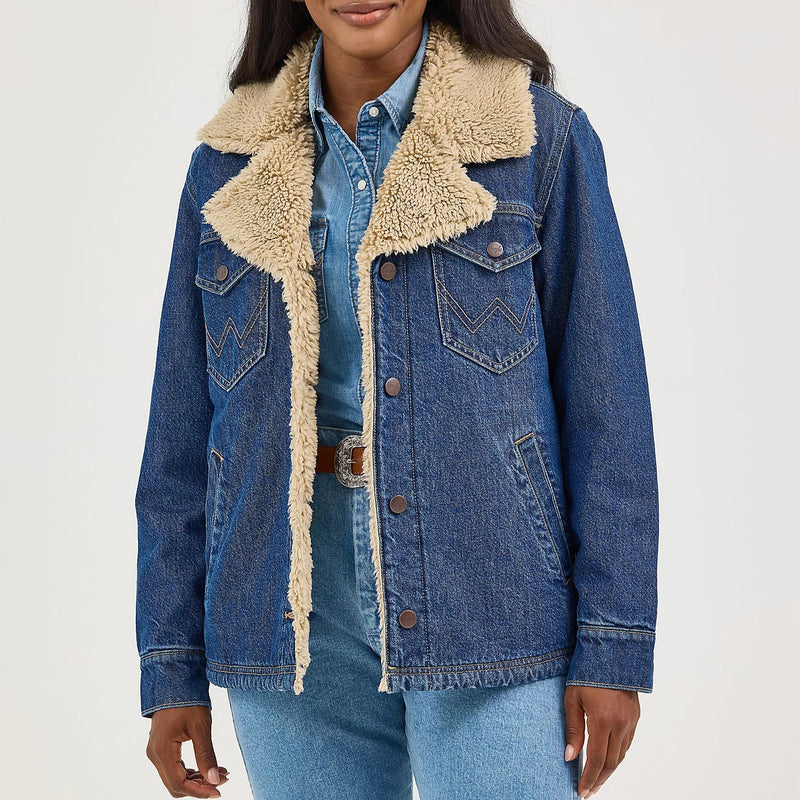 Wrangler Retro Women's Unlined Canvas Collar Denim Barn Jacket in Medium Wash