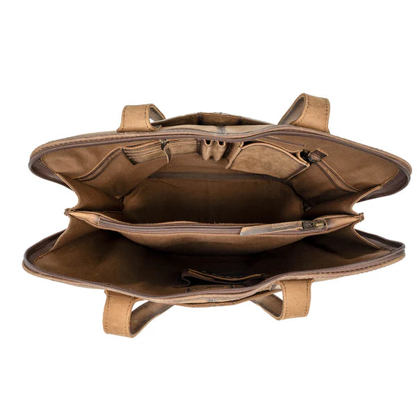 Add a touch of western flair to your getup with the Cowhide Laptop Shopper that is made from hand selected hair on hide with genuine full grain leather.
